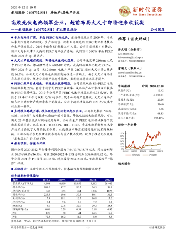 【新时代证券】【20201210】20201210-新时代证券-爱旭股份-600732.SH-首次覆盖报告:高效光伏电池领军企业,超前布局大尺寸即将迎来收获期-20页 行业研究