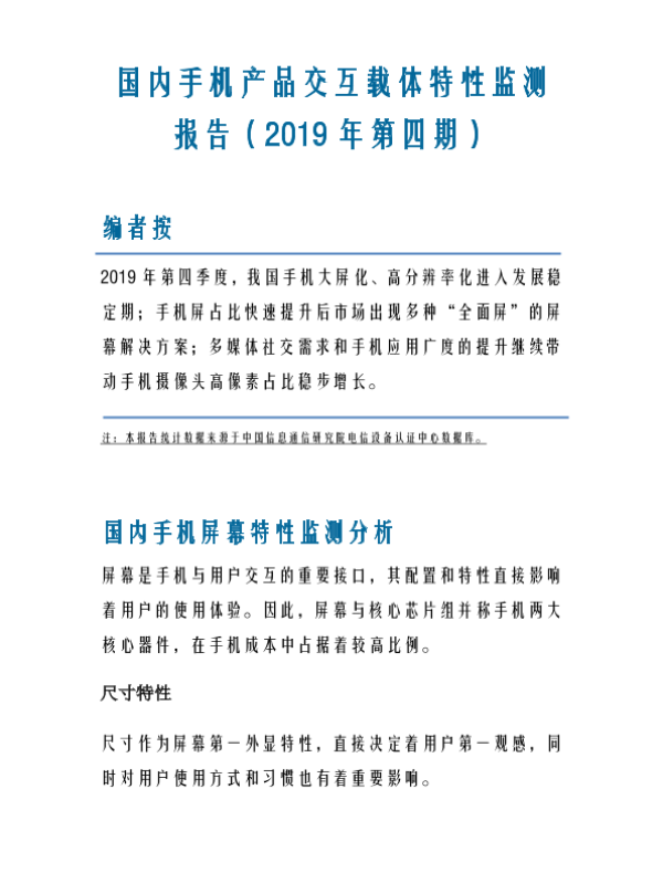 【中国信通院】【20200121】国内手机产品交互载体特性监测报告(2019年第四期)-7页 行业研究