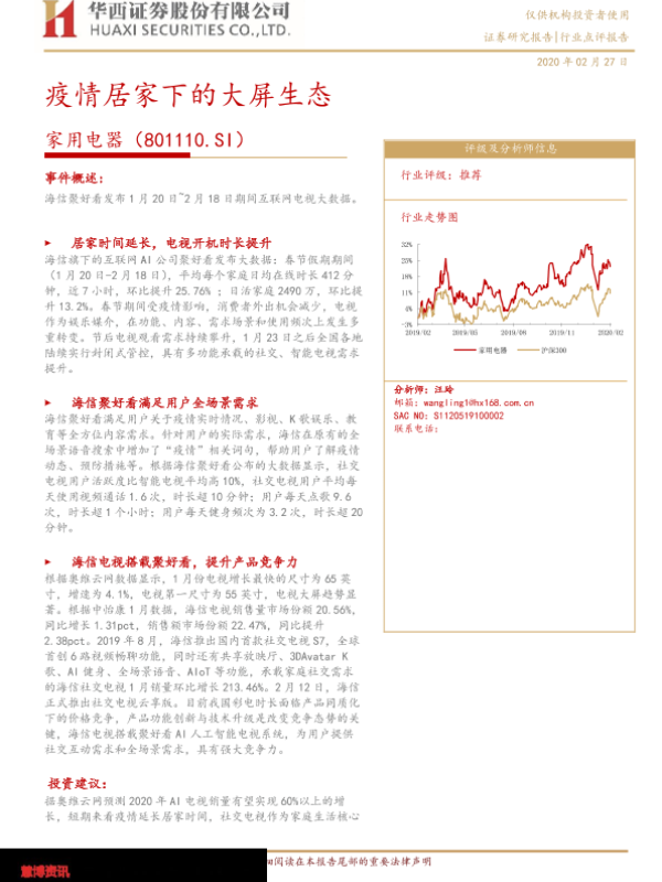 【华西证券】【20200227】疫情居家下的大屏生态-4页 行业研究