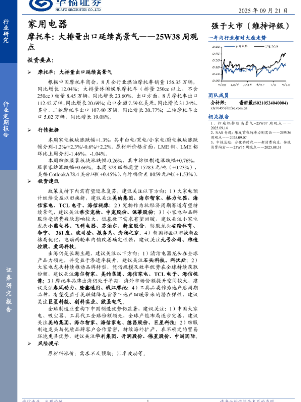 【华福证券】【202509】家用电器:摩托车:大排量出口延续高景气——25W38周观点-16页 证券期货研究报告