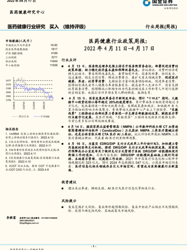 【国金证券】【20220417】医药健康行业政策周报-6页 行业研究