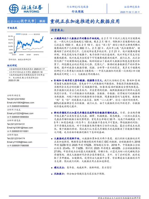 【海通证券】【20200223】信息服务行业周报:重视正在加速推进的大数据应用-4页 行业研究