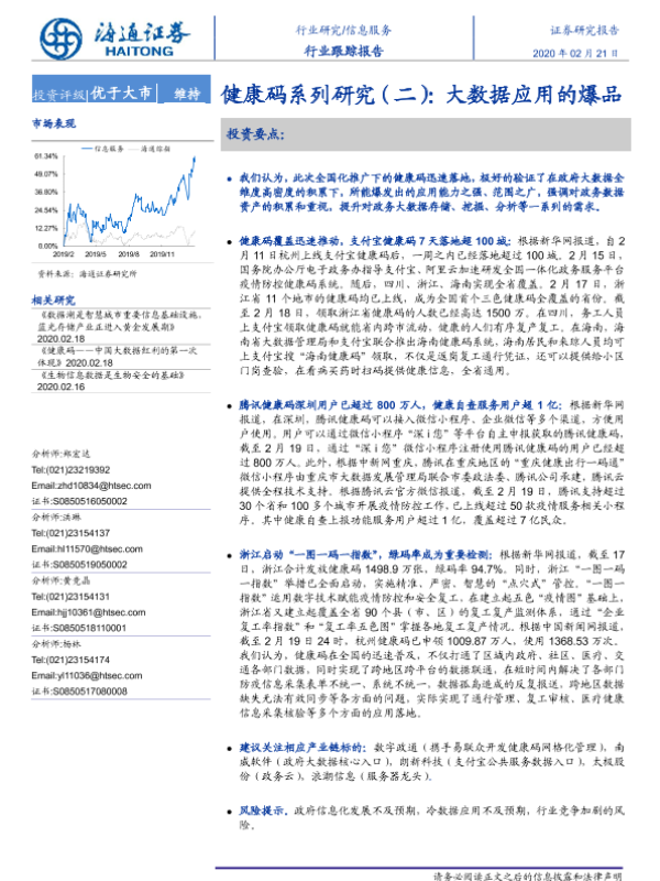 【海通证券】【20200221】信息服务行业健康码系列研究(二):大数据应用的爆品-6页 行业研究