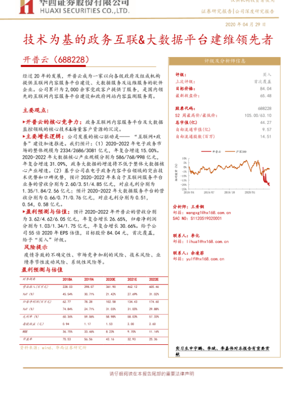 【华西证券】【20200429】技术为基的政务互联&大数据平台建维领先者-34页 行业研究