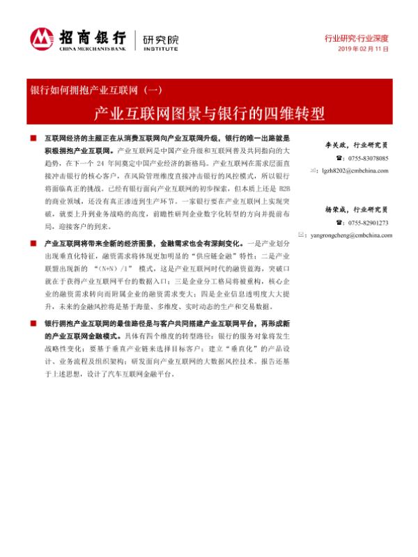 【招商银行】【20190211】银行如何拥抱产业互联网(一):产业互联网图景与银行的四维转型-18页 行业研究