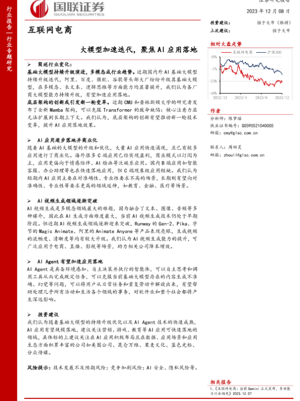 【国联证券】【20231208】互联网电商-大模型加速迭代-聚焦AI应用落地-9页 行业研究