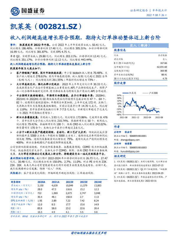 【国盛证券】【20220826】凯莱英-002821.SZ-收入利润超高速增长符合预期_期待大订单推动整体迈上新台阶-14页 行业研究