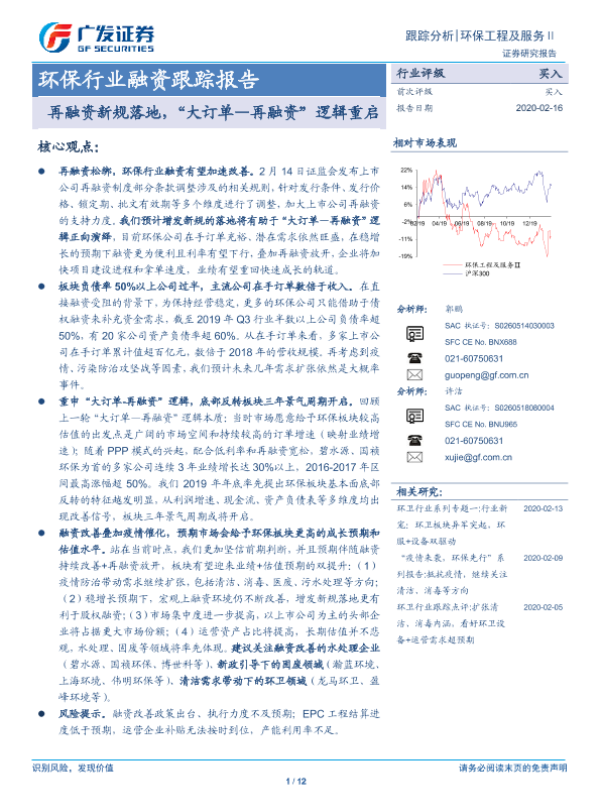 【广发证券】【20200216】环保行业融资跟踪报告:再融资新规落地,“大订单—再融资”逻辑重启-12页 行业研究