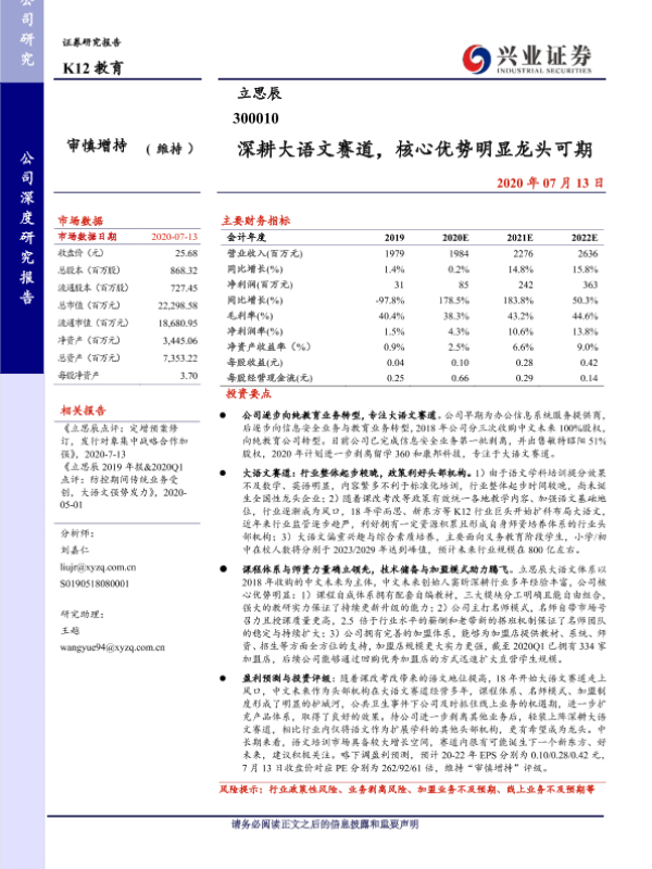 【兴业证券】【20200713】深耕大语文赛道,核心优势明显龙头可期-42页 行业研究