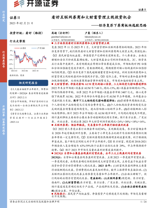 【开源证券】【20230221】经济复苏下券商板块选股思路-24页 行业研究