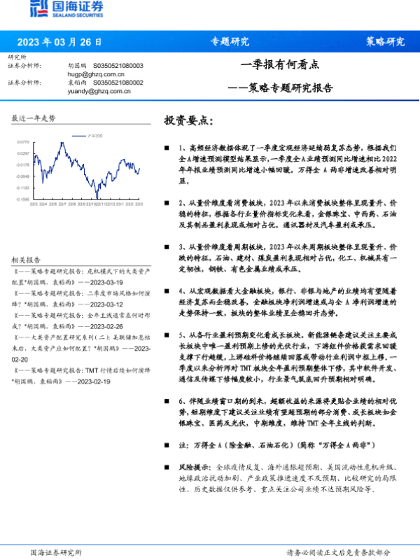 【国海证券】【20230326】策略专题研究报告:一季报有何看点-20页 行业研究