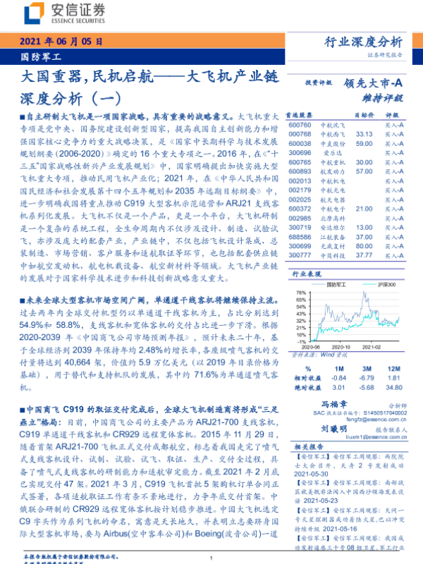 【安信证券】【20210605】大飞机产业链深度分析(一):大国重器,民机启航-50页 行业研究