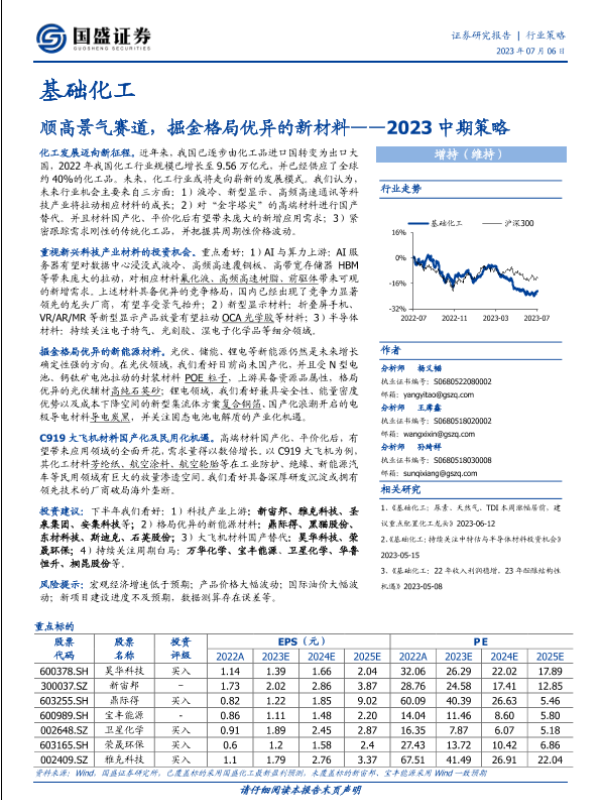 【国盛证券】【20230706】基础化工行业2023中期策略:顺高景气赛道,掘金格局优异的新材料-51页 行业研究