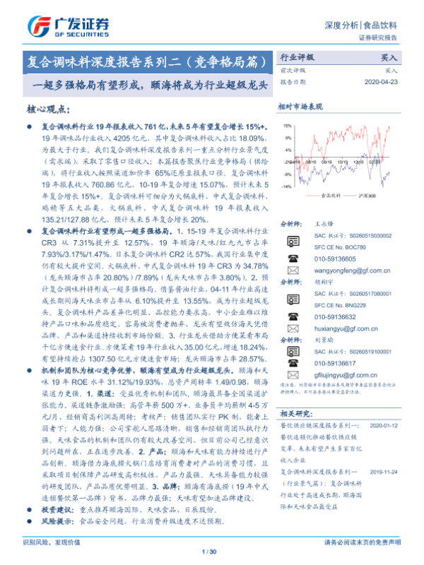 【广发证券】【20200423】复合调味料深度报告系列二(竞争格局篇):一超多强格局有望形成,颐海将成为行业超级龙头-30页 行业研究