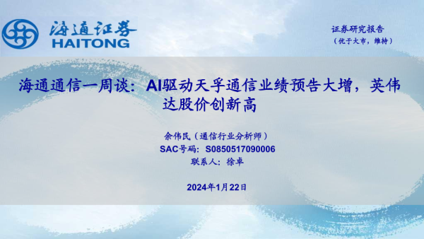 【海通证券】【20240122】海通通信一周谈:AI驱动天孚通信业绩预告大增,英伟达股价创新高-11页 行业研究