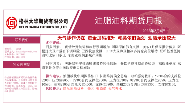 【格林大华期货】【20230204】油脂油料期货月报:天气炒作仍在,资金加码推升,粕类依旧强劲,油脂承压较大-36页 行业研究