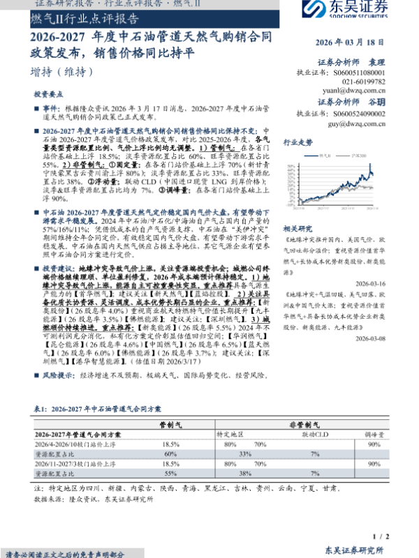 【东吴证券】【202603】燃气Ⅱ行业点评报告-2页 证券期货研究报告