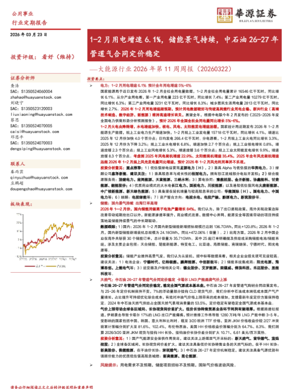 【华源证券】【202603】大能源行业2026年第11周周报(20260322)-14页 证券期货研究报告