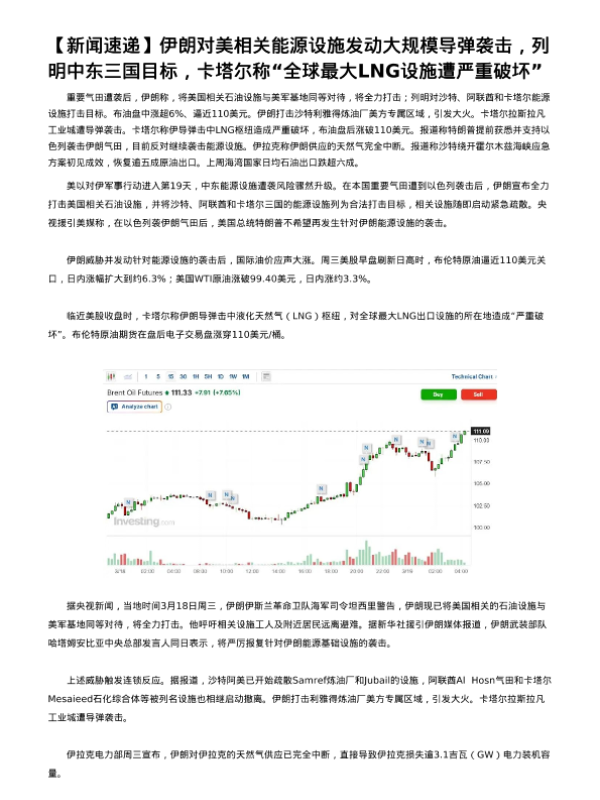 【英大期货】【202603】伊朗对美相关能源设施发动大规模导弹袭击_列明中东三国目标_卡塔尔称_全球最大LNG设施遭严重破坏-5页 证券期货研究报告