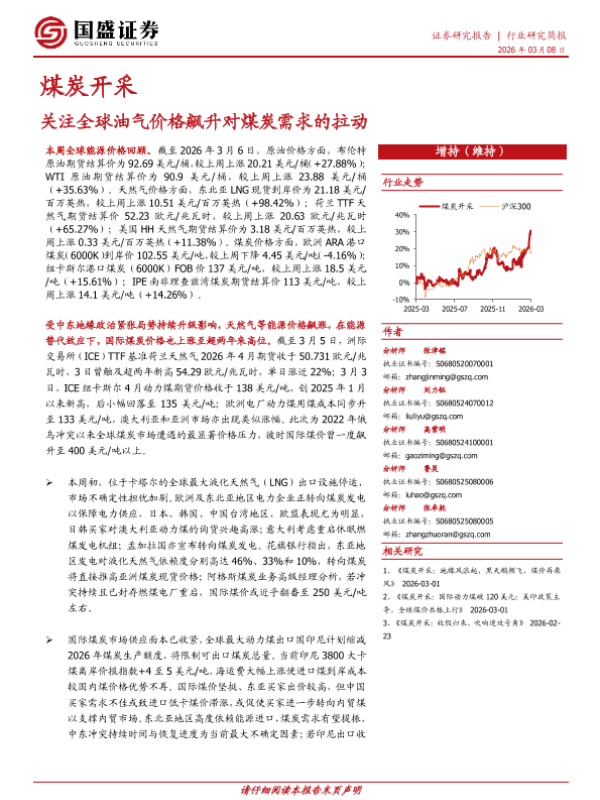 【国盛证券】【202603】煤炭开采行业研究简报:关注全球油气价格飙升对煤炭需求的拉动-12页 证券期货研究报告