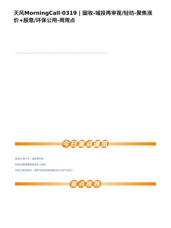 【天风证券】【202603】固收-城投再审视/轻纺-聚焦涨价+股息/环保公用-周观点-4页 证券期货研究报告