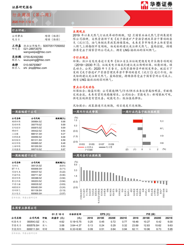 【华泰证券】【20200112】公用事业行业周报(第二周)-8页 行业研究