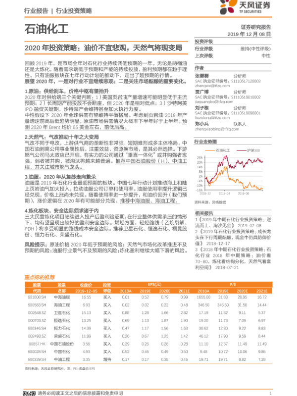 【天风证券】【20191208】石油化工2020年投资策略:油价不宜悲观,天然气将现变局-26页 行业研究