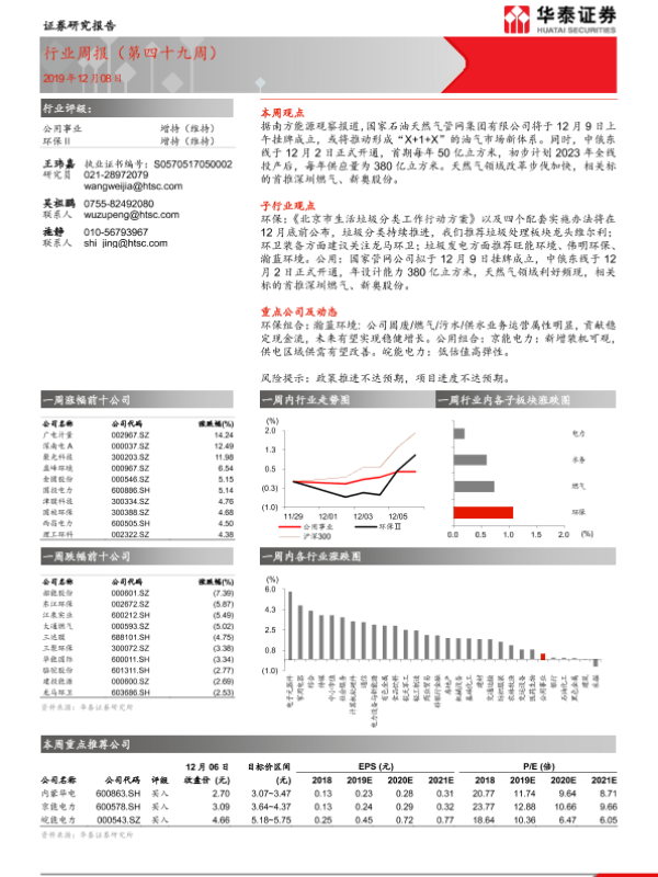 【华泰证券】【20191209】公用事业动态点评:管网公司成立,长期利好龙头城燃-7页 行业研究