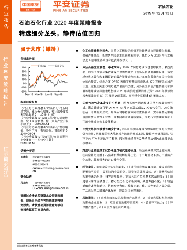 【平安证券】【20191213】石油石化行业2020年度策略报告:精选细分龙头,静待估值回归-29页 行业研究