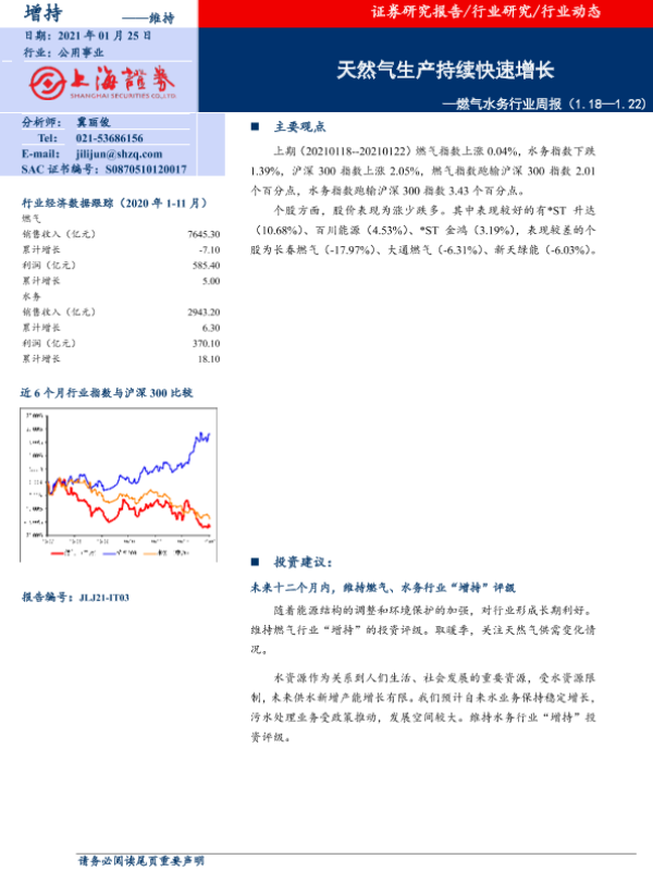【上海证券】【20210125】燃气水务行业周报:天然气生产持续快速增长-7页 行业研究
