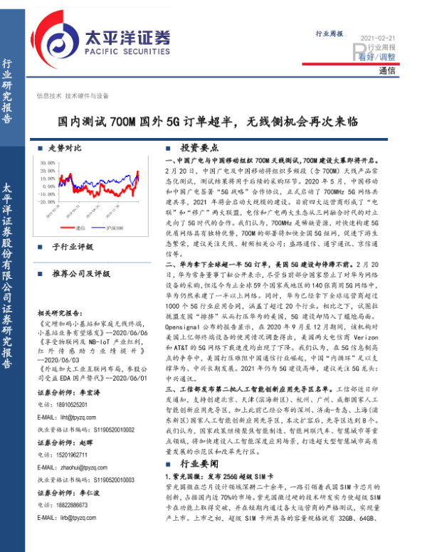 【太平洋证券】【20210221】国内测试700M国外5G订单超半,无线侧机会再次来临-12页 行业研究