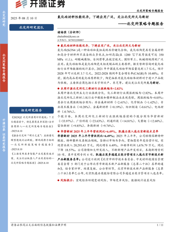 【开源证券】【202508】北交所策略专题报告:氮化硅材料性能优异,下游应用广泛,关注北交所天马新材-11页 证券期货研究报告