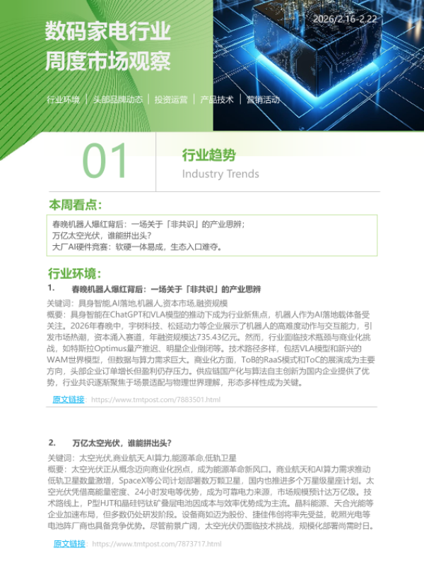 【艾瑞咨询】【202602】数码家电行业周度市场观察-7页 市场调研