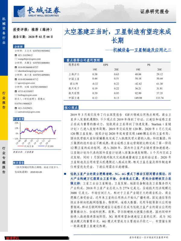 【长城证券】【20200208】机械设备—卫星制造及应用之二:太空基建正当时,卫星制造有望迎来成长期-33页 行业研究