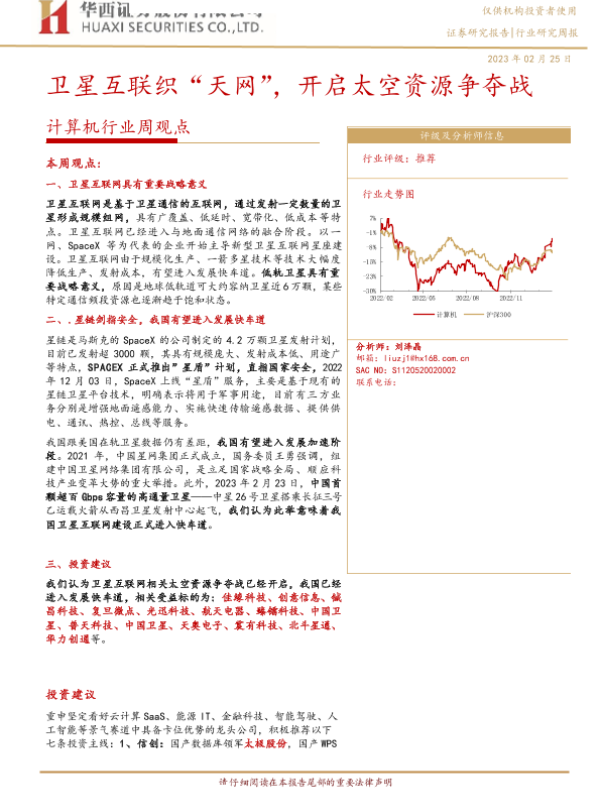 【华西证券】【20230225】计算机行业周观点:卫星互联织“天网”,开启太空资源争夺战-36页 行业研究