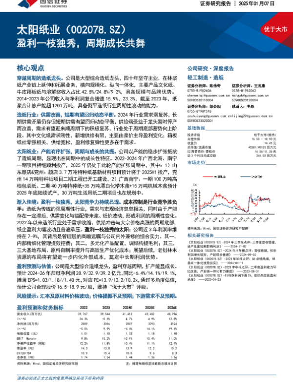 【国信证券】【20250107】太阳纸业-盈利一枝独秀,周期成长共舞-44页 行业研究