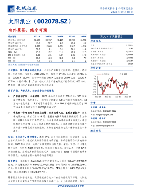 【长城证券】【20230908】太阳纸业-内外兼修,蝶变可期-32页 行业研究