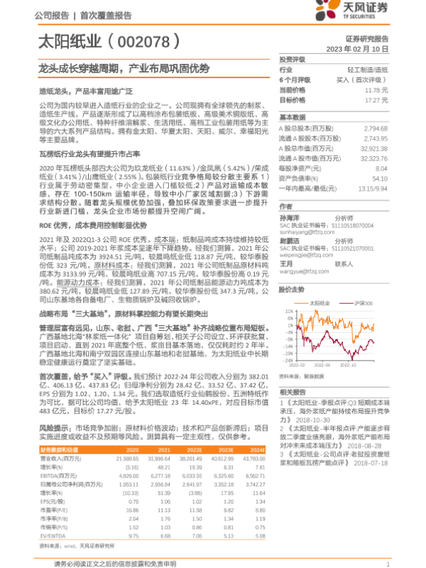 【天风证券】【20230210】太阳纸业-龙头成长穿越周期,产业布局巩固优势-24页 行业研究