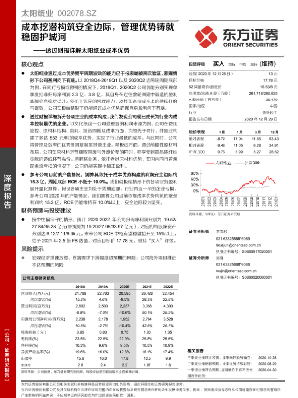 【东方证券】【20201229】透过财报详解太阳纸业成本优势:成本挖潜构筑安全边际,管理优势铸就稳固护城河-33页 行业研究