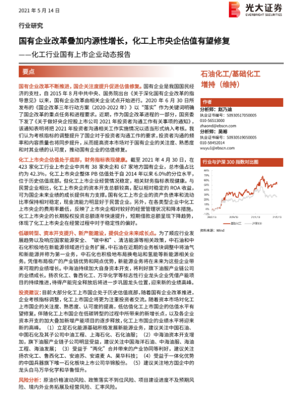 【光大证券】【20210514】化工行业国有上市企业动态报告:国有企业改革叠加内源性增长,化工上市央企估值有望修复-39页 行业研究