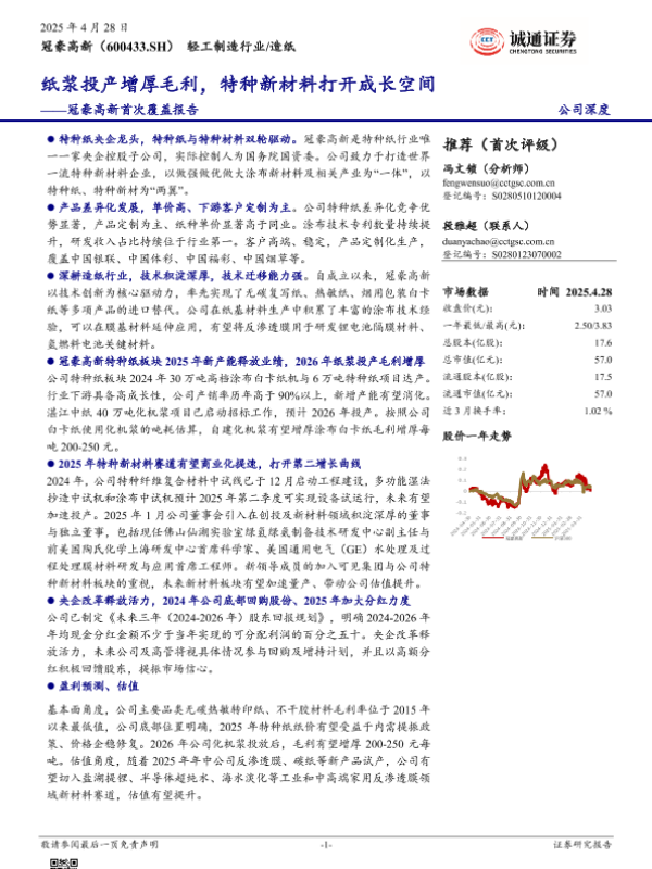 【诚通证券】【20250428】冠豪高新首次覆盖报告:纸浆投产增厚毛利,特种新材料打开成长空间-36页 证券期货研究报告