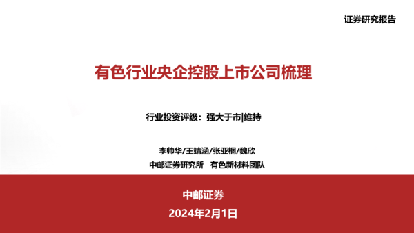 【中邮证券】【20240201】有色行业央企控股上市公司梳理-34页 行业研究