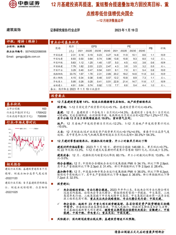 【中泰证券】【20230119】12月基建投资再提速,重组整合提速叠加地方固投高目标、重点推荐低估值绩优央国企-19页 行业研究
