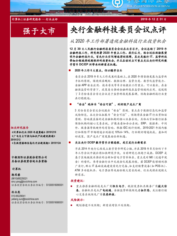 【中银证券】【20191231】计算机:央行金融科技委员会议点评-从2020年工作部署透视金融科技行业投资机会-4页 行业研究