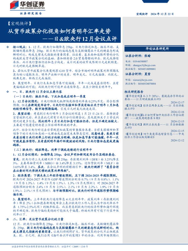 【华创证券】【20241222】从货币政策分化视角如何看明年汇率走势——日&欧央行12月会议点评-13页 宏观策略