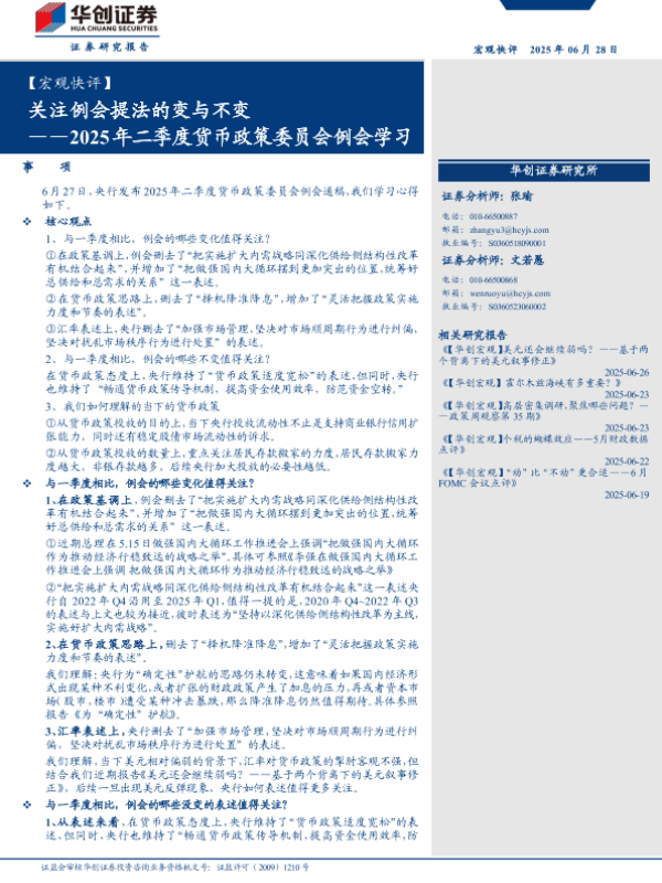 【华创证券】【20250628】2025年二季度货币政策委员会例会学习:关注例会提法的变与不变-10页 宏观策略