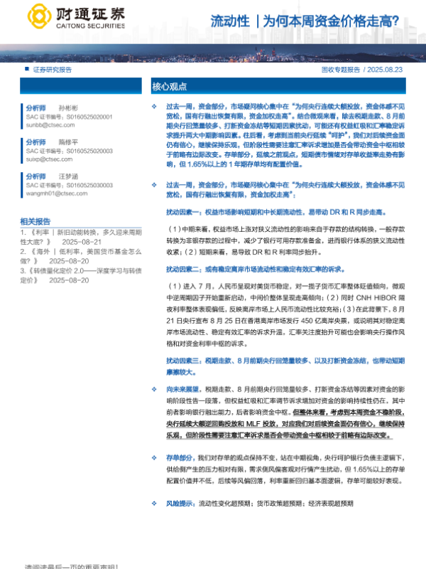 【财通证券】【202508】流动性|为何本周资金价格走高?-23页 证券期货研究报告