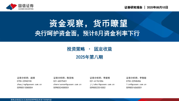 【国信证券】【202508】投资策略·固定收益2025年第八期:资金观察,货币瞭望,央行呵护资金面,预计8月资金利率下行-28页 证券期货研究报告