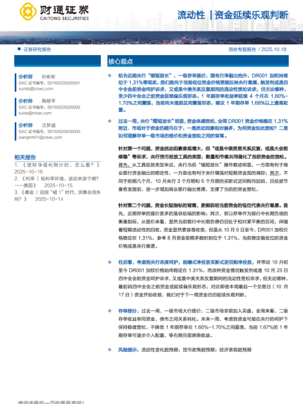 【财通证券】【202510】流动性|资金延续乐观判断-23页 证券期货研究报告