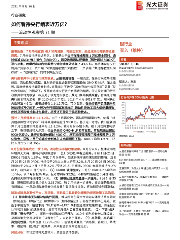 【光大证券】【20210826】如何看待央行缩表近万亿?-8页 行业研究